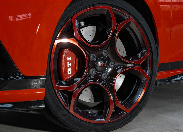 新车对外观升级不多,座椅依旧保留方格图案,整体减重30公斤。依旧采用标志性的红色涂装,前轮驱动,深色门把手以及GTI 50专属标识,最大可输出320马力,